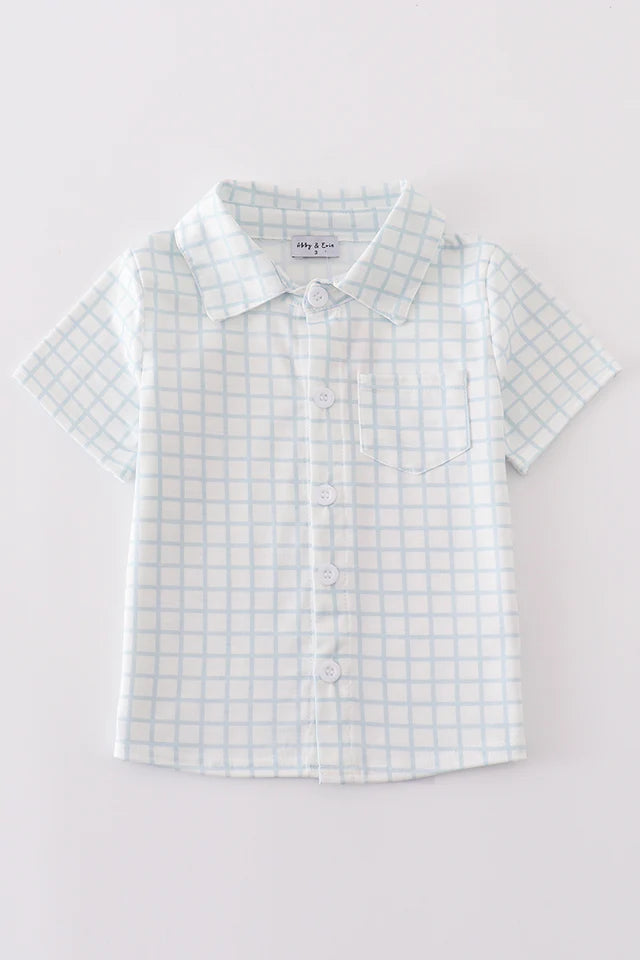 Blue checkered boy button down shirt