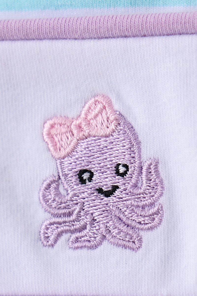 Blue octopus embroidery stripe ruffle dress