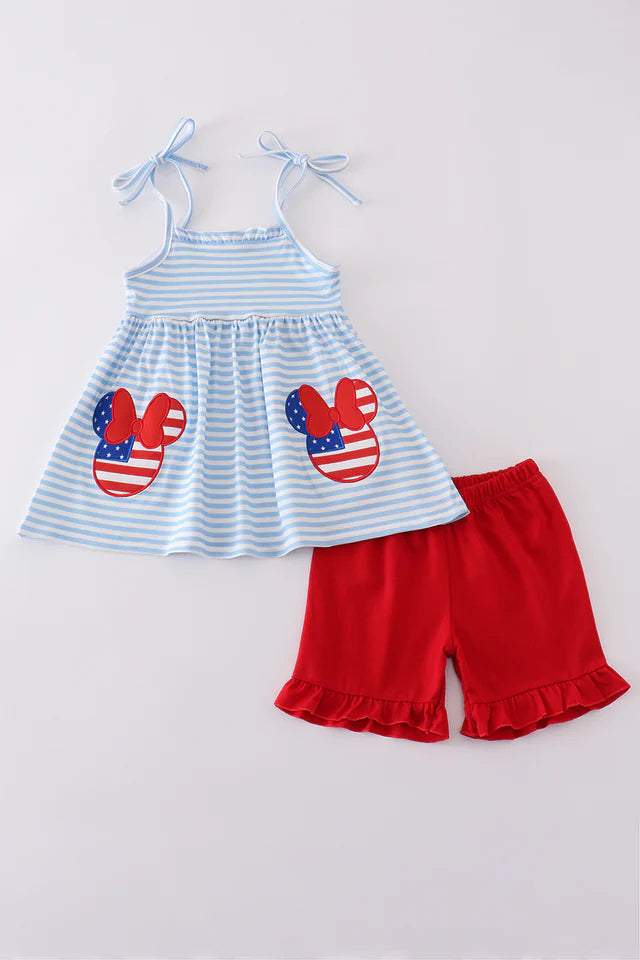 Get ready for some playful fun with our Blue&red character applique shorts set! These stylish shorts feature unique character designs that will make you stand out in any crowd. Perfect for casual wear or a day at the beach, this set will add a touch of quirkiness to your wardrobe. Don't miss out on the fun!