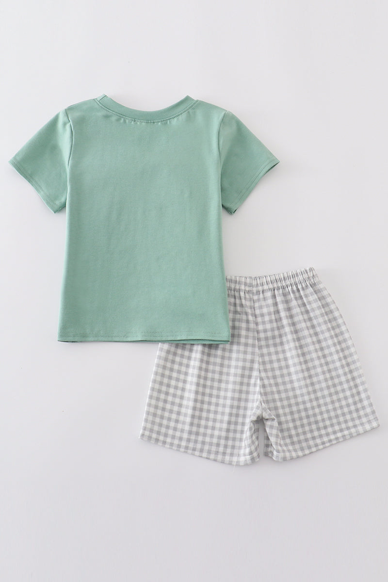 Green bunny applique set