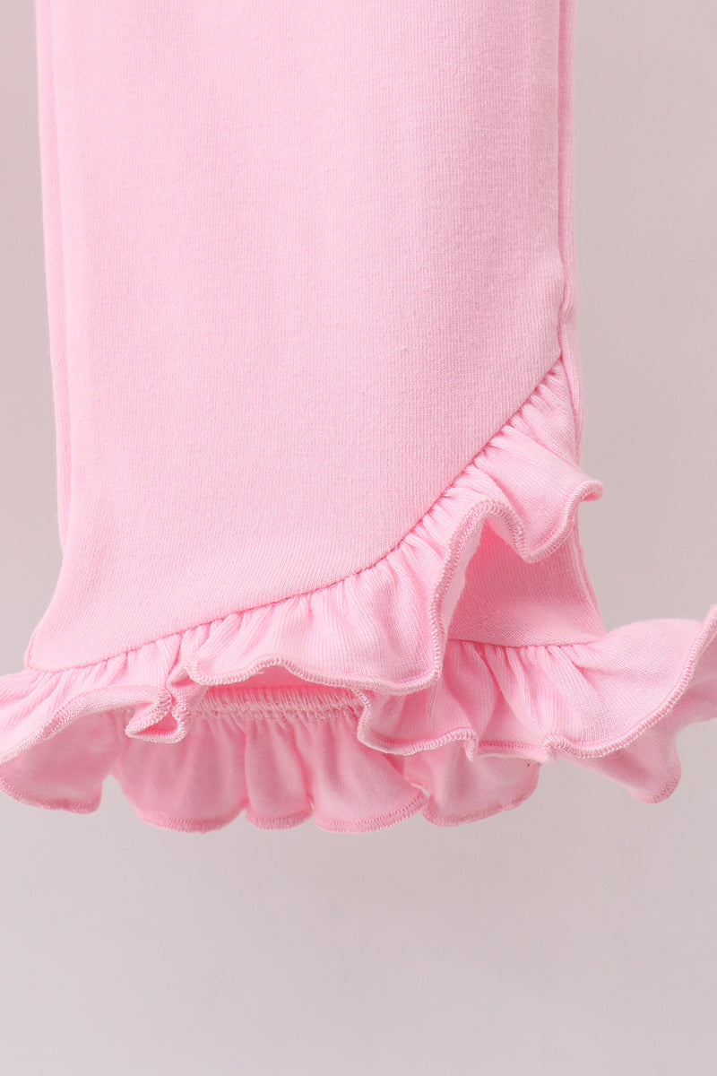 Green clover embroidery stripe bow pants set