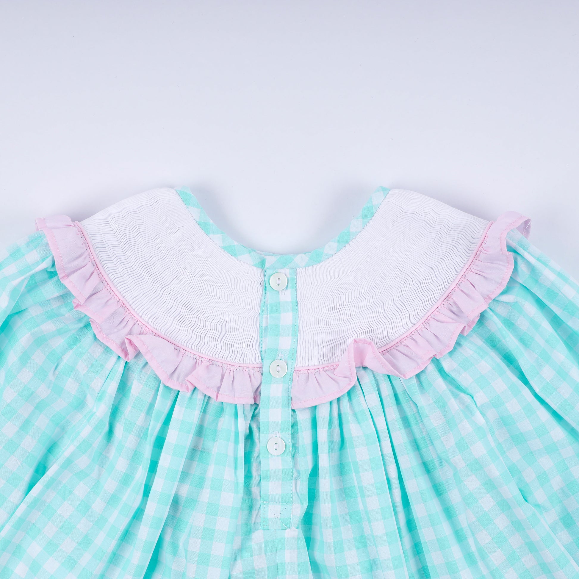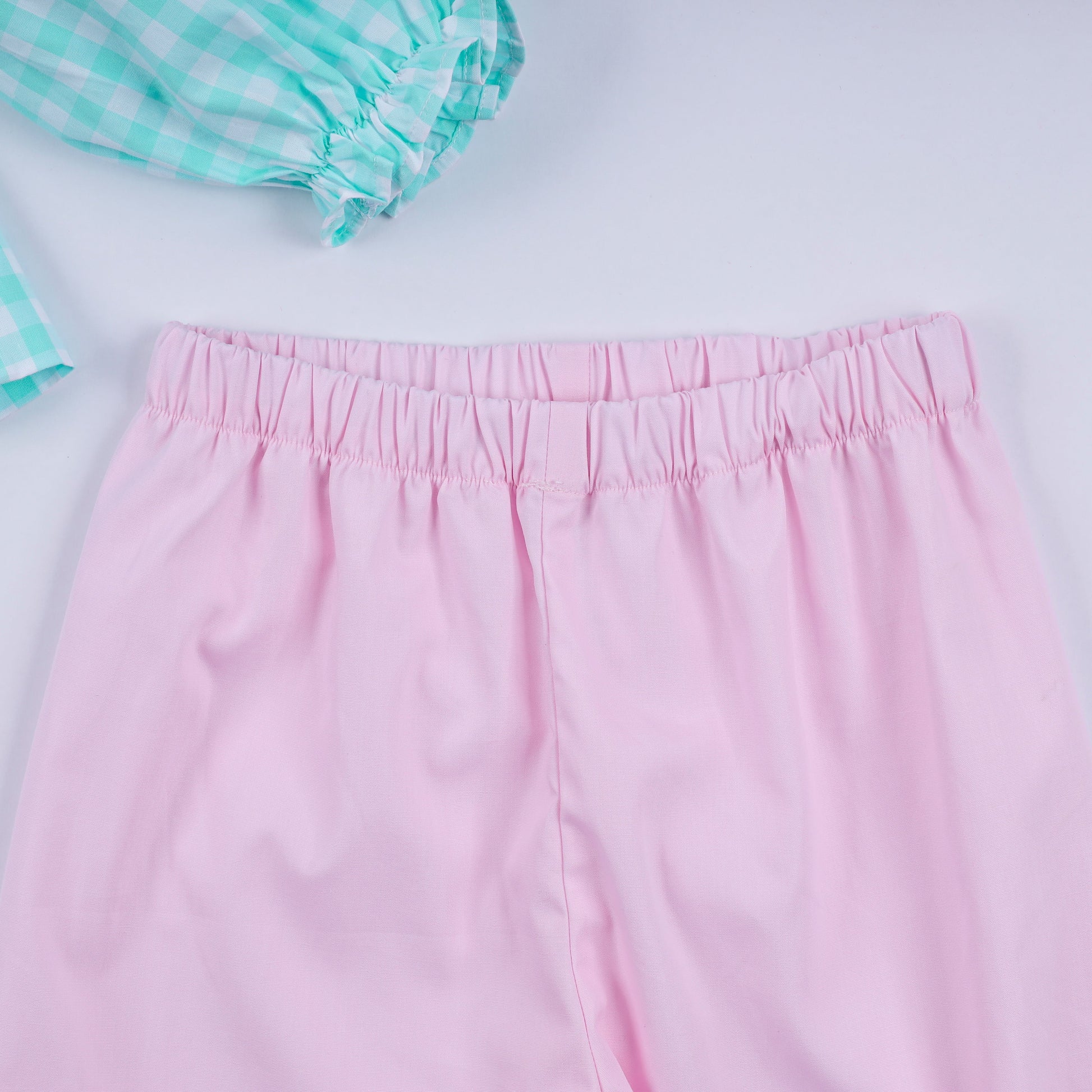 Mint christmas nutcracker hand smocked gingham ruffle pants set