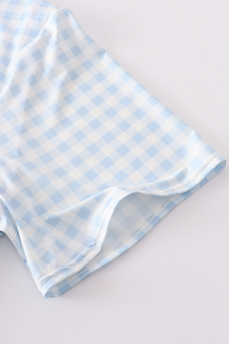 Patriotic plaid flag embroidery woman bikini swim cover up