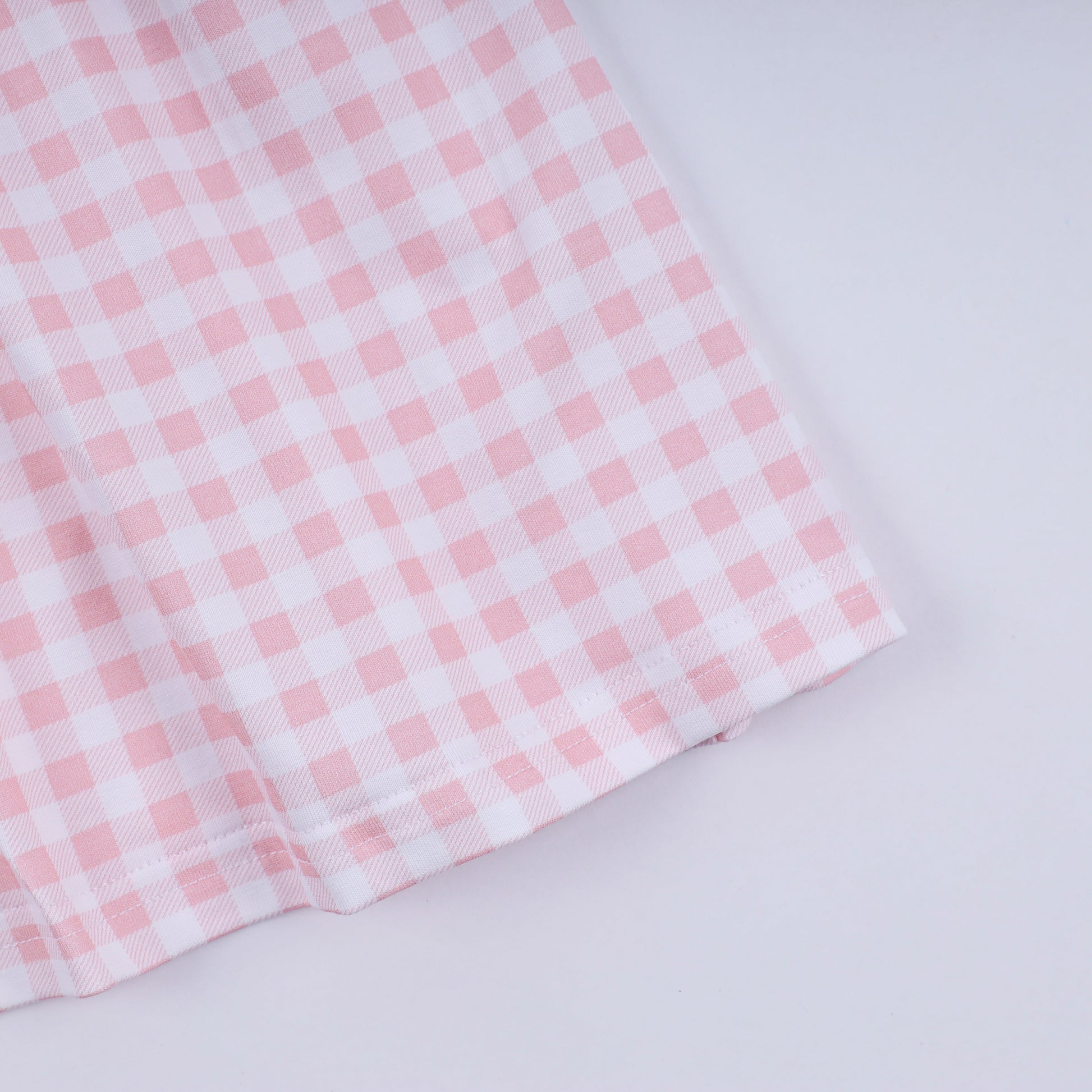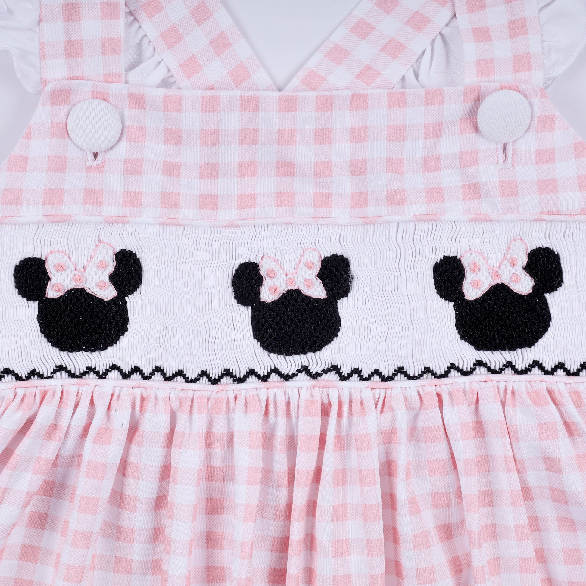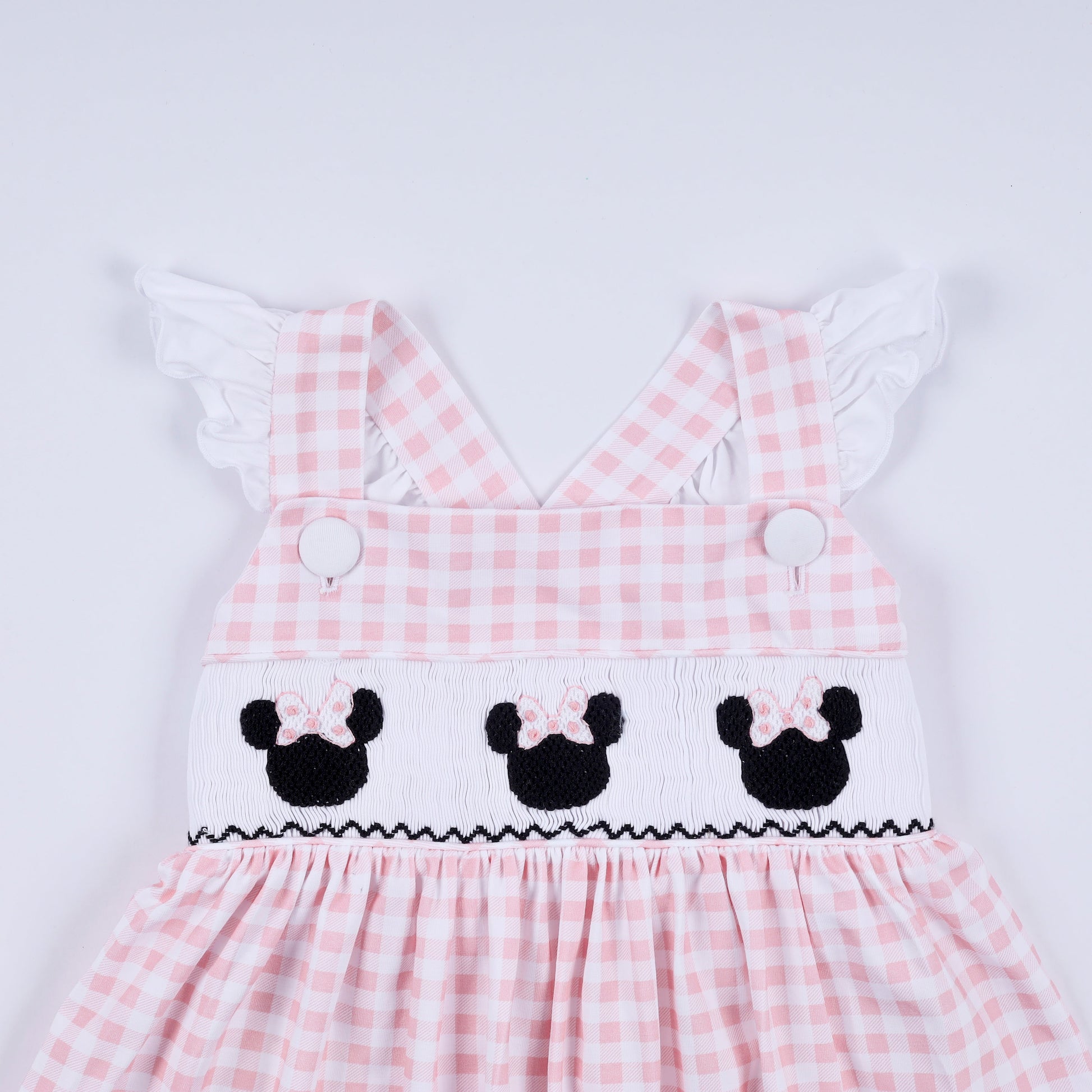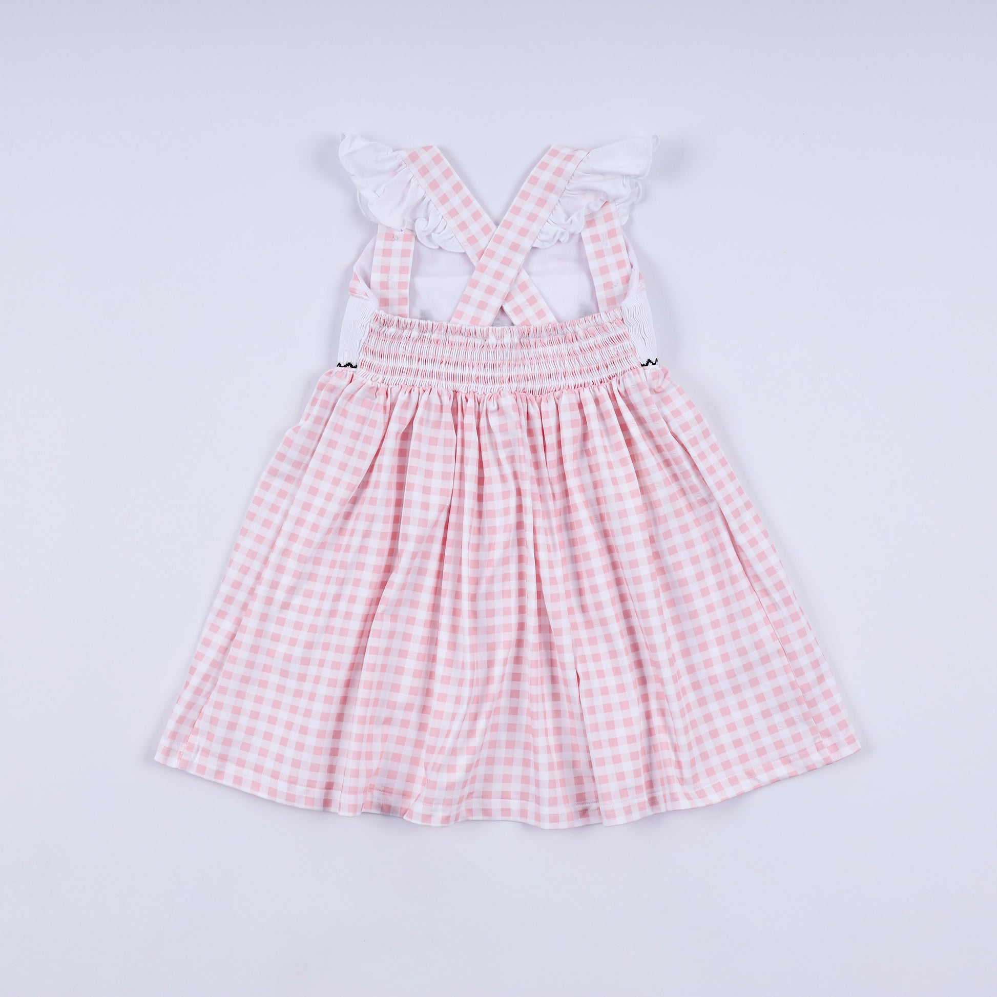 Pink character hand smocked gingham ruffle dress